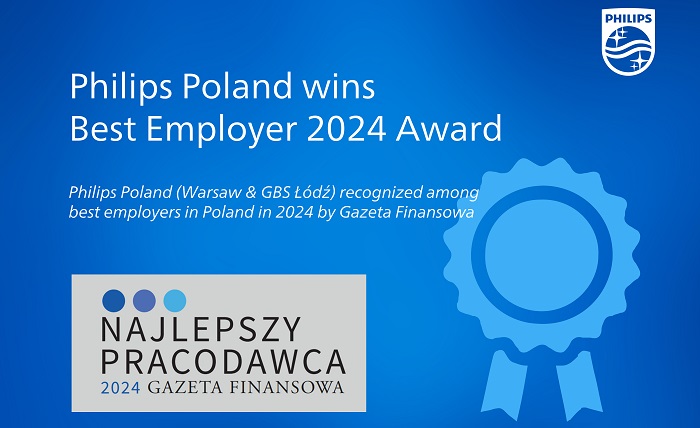 Philips Polska Sp. z o.o. znalazło się wśród 19 instytucji, które zdobyły tytuł Najlepszego Pracodawcy 2024 w plebiscycie Gazety Finansowej opublikowanym 26 kwietnia 2024 roku, co jest ogromnym wyróżnieniem i potwierdzeniem zaangażowania firmy w tworzenie wyjątkowych warunków pracy. Globalnie Philips zatrudnia 69 700 pracowników, prowadząc sprzedaż i świadcząc usługi w ponad 100 krajach. W Polsce firma jest obecna od ponad 103 lat, zatrudniając w oddziałach w Warszawie i Łodzi osoby w obszarze sprzedaży, serwisu i marketingu oraz funkcji wspierających. Philips jest liderem w diagnostyce obrazowej, ultrasonografii, systemach do obrazowania interwencyjnego, monitorowaniu i informatyce medycznej, a także w zdrowiu konsumenckim (pielęgnacji damskiej i męskiej, szczoteczek sonicznych oraz opieki nad mamą i dzieckiem). - W Philips od ponad 130 lat tworzymy innowacje, które służą zdrowiu i życiu ludzi, a nasza tradycja w Polsce sięga 1921 roku. Przez ten czas nie tylko firma, nasza strategia, produkty, ale także kultura organizacyjna zmieniały się – mówi Paweł Baka, Członek Zarządu ds. People, Philips - Zaczynaliśmy od rodzinnego biznesu, który założyli ojciec Federic Philips z synami Gerardem i Antonem. Obecnie firma działa w ponad 100 krajach na świecie, zatrudniając prawie 70.000 pracowników, o różnym pochodzeniu, perspektywach i doświadczeniach. Cenimy te różnice – to one sprawiają, że kreatywność i innowacyjność rozkwitają. Chcemy, aby Philips był najlepszym miejscem pracy dla ludzi, które podzielają nasze pasje. W centrum wszystkiego czym się zajmujemy stawiamy pacjenta, naszych klientów, konsumentów oraz dobro planety. Na początku 2023 roku firma rozpoczęła proces transformacji obejmujący również kulturę organizacyjną. Nowo zdefiniowana kultura opiera się na jednym celu tzw. „Impact with care”, który polega na pozytywnym oddziaływaniu uwzględniającym troskę o pacjentów, pracowników i partnerów oraz planetę.